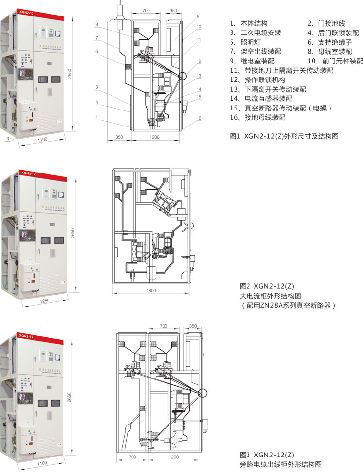 XGN2-12(Z)開(kāi)關(guān)柜為金屬封閉箱式結(jié)構(gòu),柜體骨架由角鋼焊接而成,柜內(nèi)分為斷路器室、母線室、電纜室、繼電器室等,室與室之間用鋼板隔開(kāi)。
