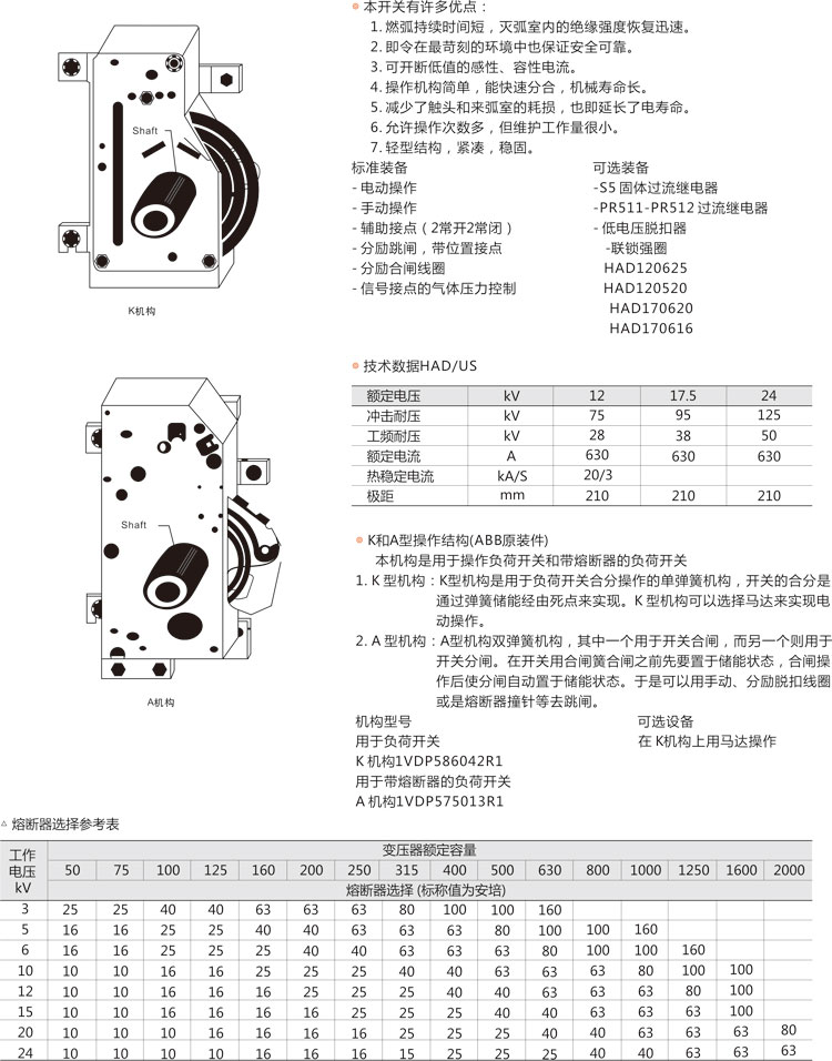 2.負(fù)荷開(kāi)關(guān)是獨(dú)立單元,內(nèi)部充以SF6氣體。