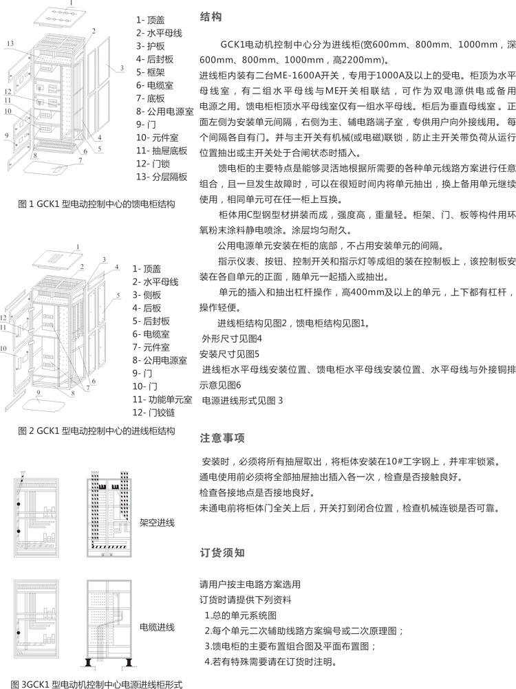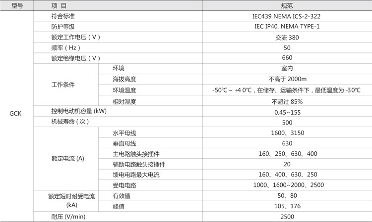 GCK低壓抽出式開關(guān)柜,主要是由一些組合式電動機控制單元,和其它功能單元組合而成。這些單元以上下重疊的方式安裝在封閉的金屬柜體內(nèi)。用設(shè)置在柜體上方的水平母線,將每個柜體聯(lián)結(jié)在一起,同一柜體的功能單元則并聯(lián)在垂直母線上。柜體共分水平母線區(qū)、垂直母線區(qū)、電纜區(qū)和設(shè)備安裝區(qū)等四個互相隔離區(qū)域,功能單元分別安裝在各自的小室內(nèi),當(dāng)任何一個功能單元發(fā)生事故時,均不影響其它單元,防止事故擴大。本產(chǎn)品符合JB/T9661-1999標(biāo)準(zhǔn)。該產(chǎn)品采用IEC114規(guī)定的IP40防護等級,當(dāng)所有的門和護板關(guān)閉時,或門開啟時以及功能單元外于移出位置時,均能達到相應(yīng)的防護等級,這樣可確保人身安全。該產(chǎn)品設(shè)置有完善可靠的接地系統(tǒng)和保護電路,所有功能單元均能按規(guī)定的性能要求,分斷短路電流,進線單元具有三段保護特性。因此,可以保證供電的可靠性,和設(shè)備與系統(tǒng)的安全。所有功能單元,均可通過接口件與PC線板(可編程序控制器)或微處理機連結(jié),作為自動控制系統(tǒng)的執(zhí)行單元,根據(jù)用戶需要還可以提供其它內(nèi)容的功能單元和功能組合,該產(chǎn)品適用于交流380V,頻率50Hz的電路中。